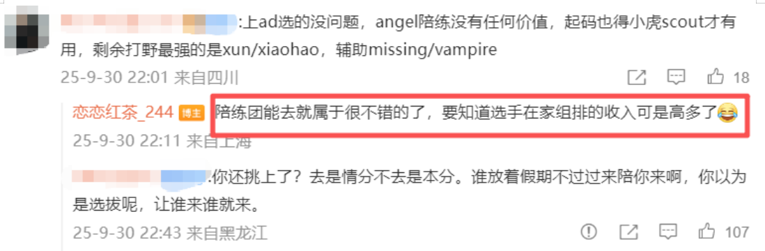 只不过,在网友看来,这几名涅槃组选手来当陪练,实力上似乎有点不够看。有网友表示:“这几个不够看啊,看来没进世界赛那几个大咖不愿意陪跑。”还有网友直言:“这几个陪不陪有啥用啊,没准都越打越菜。”甚至有网友质疑:“这陪练有啥价值呀,不如随便找LCK的队伍都比这强。”