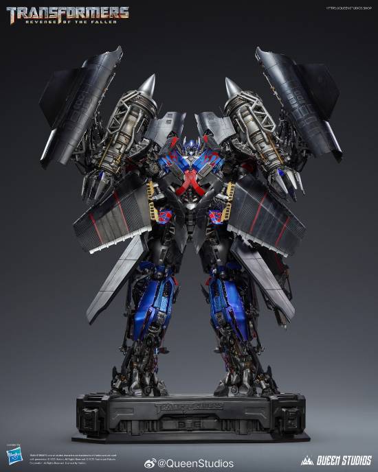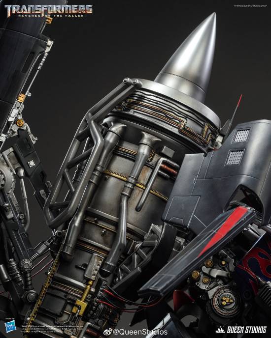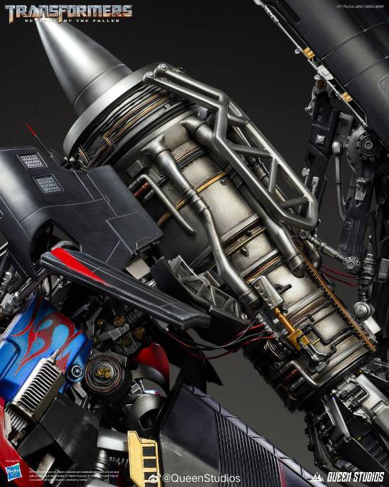 QueenStudios此次打造的TF2天火擎天柱全身像采用1:1比例,全高130cm,宽99cm,深70cm,完美还原喷射器完全展开的决战姿态。雕像主体采用树脂与金属材质,通过精密的分件工艺呈现机械结构的层次感,背部喷射翼的金属质感与能量炮的发光效果均达到博物馆级收藏标准。