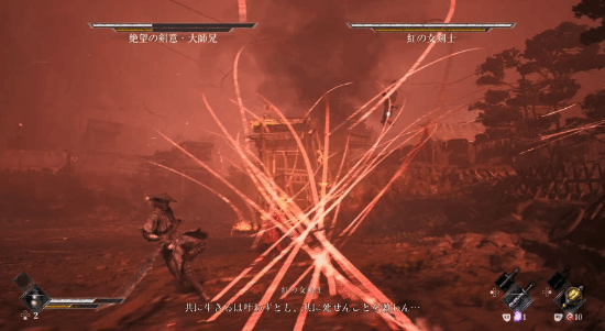 除了丰富的武器系统外,《影之刃零》的BOSS战设计也颇具创意。文中特别提到了“红衣女剑客”这一BOSS的独特“乱入”机制。如果玩家在初次遭遇时选择绕过她而非直接击败,那么在后续的“七星剑阵·大师兄”BOSS战中,这位红衣剑士会突然加入战斗,与大师兄形成二人夹击之势,给玩家带来意想不到的挑战。Fami通的工作人员在试玩时看到这一幕,不禁欢呼“惊喜!”,这确实为游戏增添了不少乐趣。