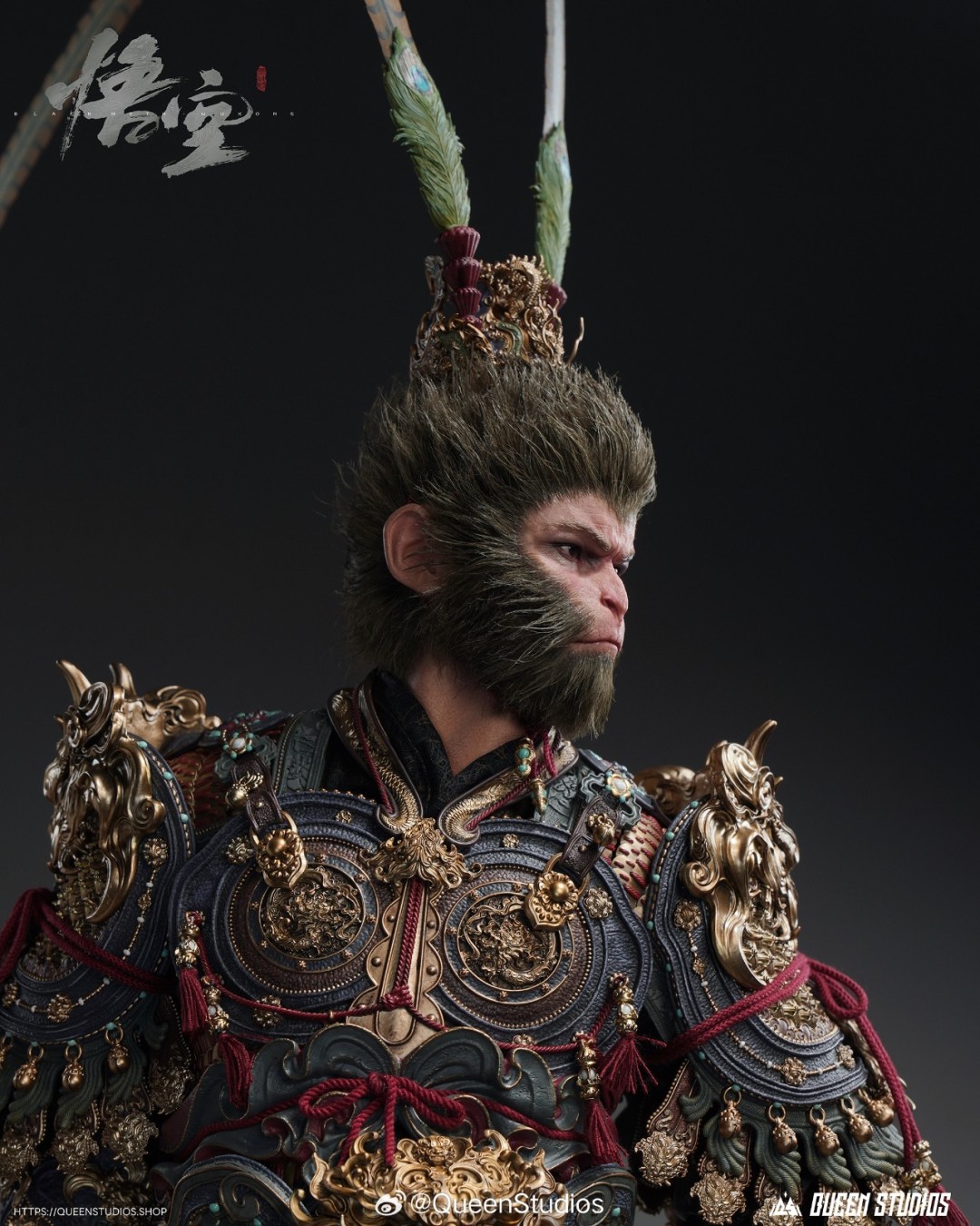 近日,知名收藏品制作商Queen Studios震撼发布了《黑神话:悟空》游戏中的天命人·大圣金甲两款全身像产品,分别为1/3比例和1/1比例,均获得游戏科学官方权威授权,为收藏爱好者们带来了前所未有的惊喜。