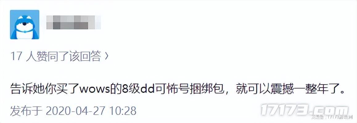 高赞回答竟会是:告诉她你买了《战舰世界》8级驱逐舰“可怖号”捆绑包,就可以震撼她一整年了,