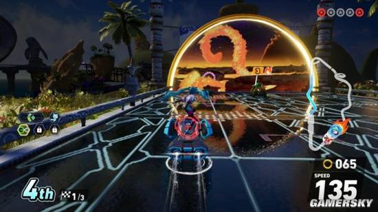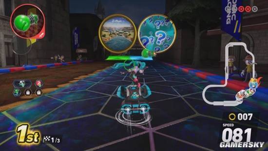 相比《马里奥赛车》的全年龄向设计,《索尼克赛车交叉世界》更强调街机式速度感。游戏深度融合《索尼克》系列的高速奔跑特性,在保留卡丁车竞速欢乐氛围的同时,通过多样化系统确保操作深度与重复游玩价值。其核心差异在于「交叉世界」机制——每场竞速赛第二圈可通过传送门切换至随机赛道,第三圈回归原赛道。若首圈夺冠,玩家可主动选择赛道分支,掌控比赛走向。