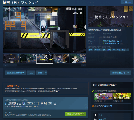近日,由东映动画(TOEI ANIMATION Co.,Ltd)制作发行的搞笑小品游戏《桃香(を)ワッショイ》正式宣布将于9月29日登陆Steam平台。这款游戏改编自2024年4月播出的热门动漫《Girls Band Cry》,以独特的2D平台跳跃玩法重现了动漫第五集后半段的经典剧情。