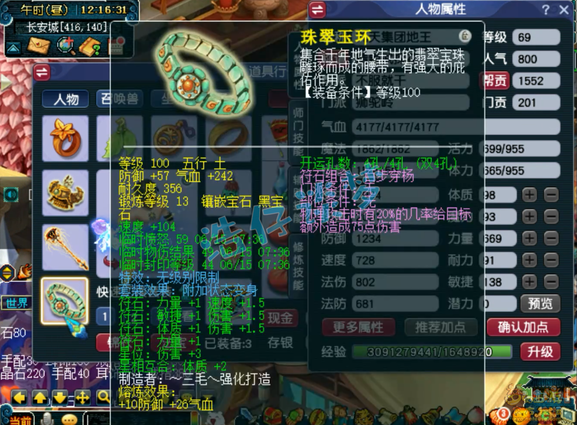 当然,还有那把140级无级别高伤武器,镶嵌了13锻红玛瑙,堪称输出利器。