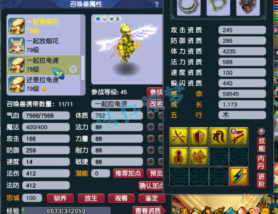 最后,还有一只7技能龟速血宠雷鸟人和一只8技能净台龟速血宠雷鸟人,速度极低,体资非常不错,为团队提供了稳定的后援。