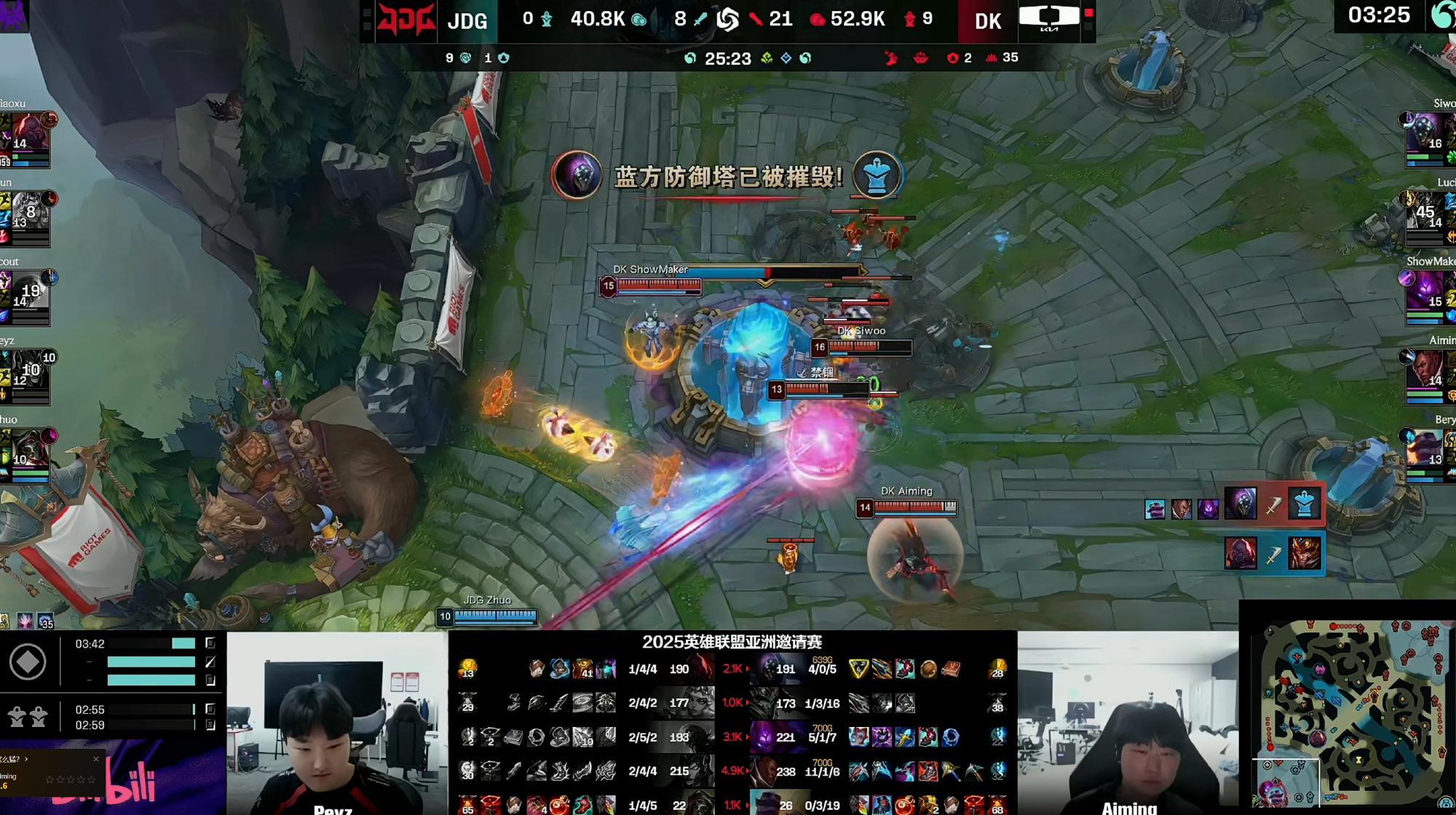 中期,Siwoo的贾克斯推掉了上路一血塔,并成功单杀Scout的瑞兹。21分钟时,JDG主动打厄塔汗,但Lucid的皇子走过来抢下厄塔汗。23分钟,JDG上路主动开团,然而DK包夹过来轻松打出0换4。最终,在25分钟时,DK再次击杀JDG四人,赢得比赛的胜利。