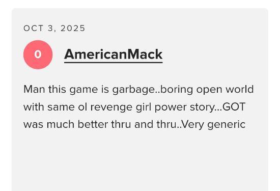 知名Youtuber MightyKeef也在社交平台上发表了自己的看法。他直言不讳地表示:“最离谱的是,即便遭到评论轰炸,《羊蹄山之魂》在Metacritic上的评分仍然居高不下。这只能说明,那些所谓的‘文化战’怪人,其实只在推特上有点存在感,根本无法动摇游戏的真实口碑。”