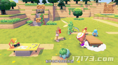 《宝可梦 Pokopia》中虽然有收集宝可梦的环节,但改造场景的方式更多是百变怪学习其他精灵的方式后,自己下地干活,其他宝可梦就像不中用的啦啦队,只会干看着,一点忙都帮不上。