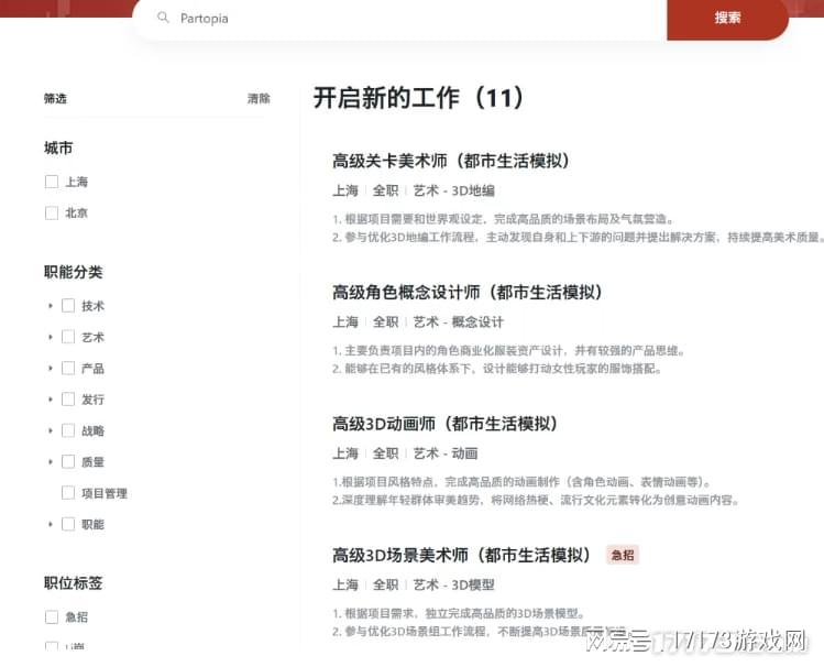 此外,莉莉丝旗下也有一款生活模拟的在研作品《Partopia》,只不过这款游戏进度相对更慢一些,至今仍只能在其官网上找到相关的招聘信息,游戏具体内容仍是个谜。