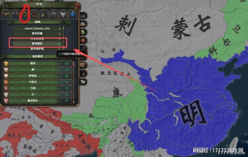这个玩法本质就是复刻当时万国来朝的时代背景,让大明周边的小国可以通过朝贡的方式依附大明。朝贡国拥有完全独立的外交权利和领土权利,且拥有宣战权。当朝贡国受到进攻时,其宗主国会受到参战召唤,可以选择一同参与战争。