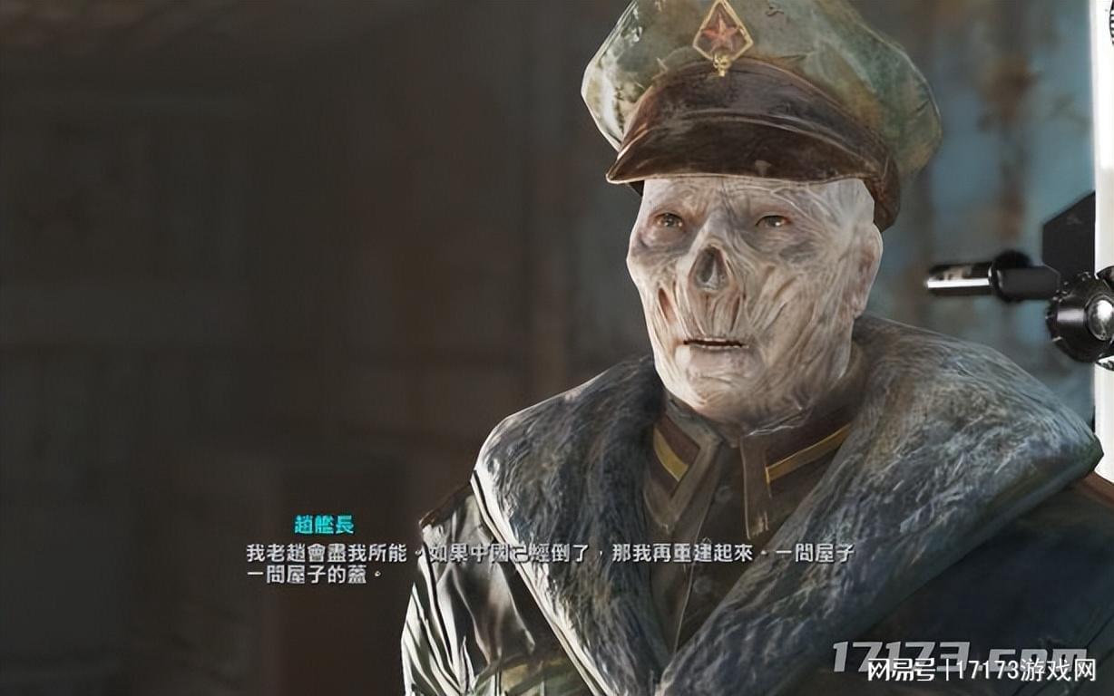 其中,《辐射4》的赵舰长形象,就被他们塑造得十分传神。虽然这位舰长在200年前奉命潜入美国海域执行核打击任务,也因此变成了尸鬼,但他却凭借着一腔爱国执念并没有丧失神志,反倒是守护扬子号近200年时间,并留下了这段经典对话: