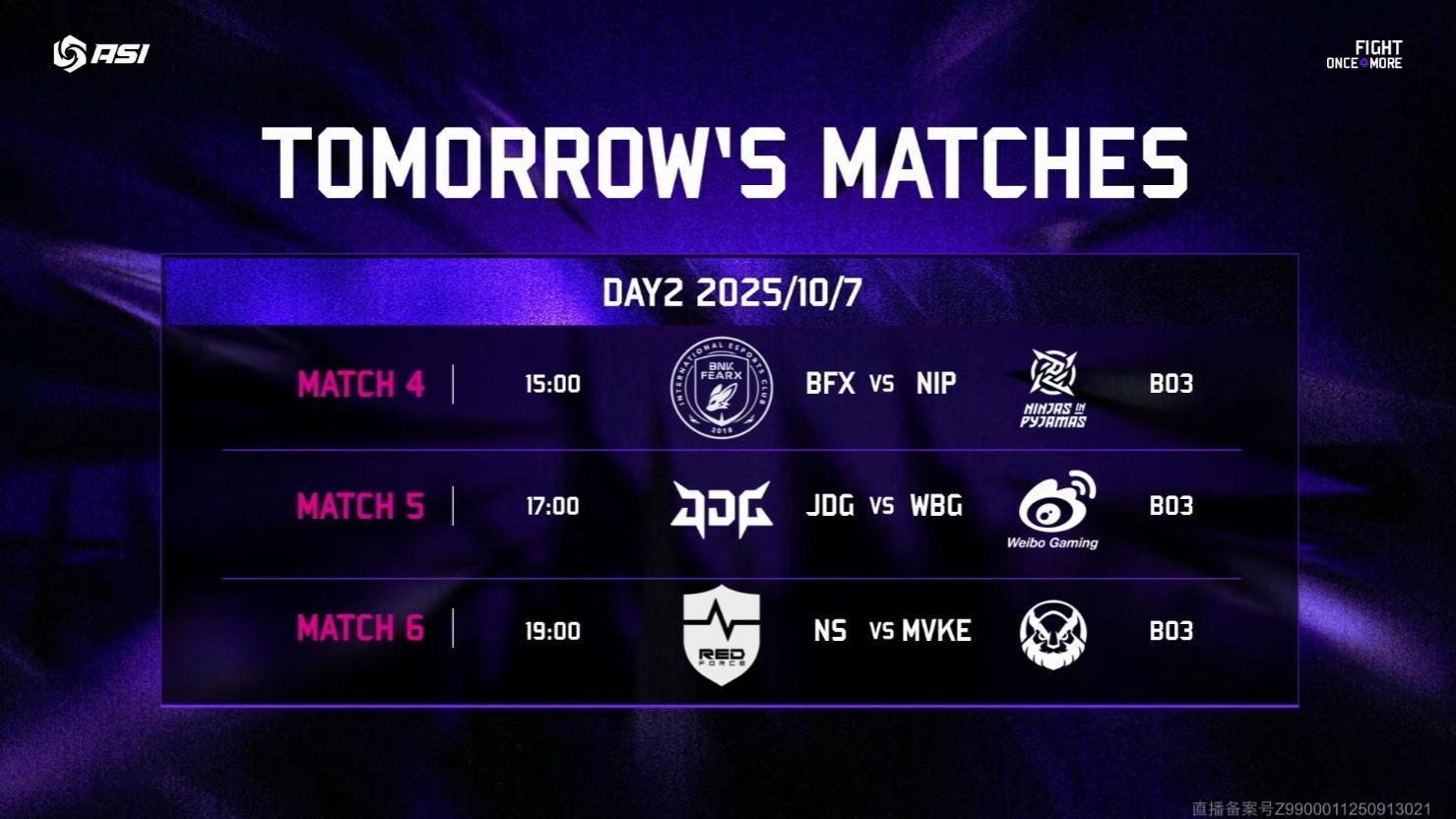 10月7日的比赛日程安排得满满当当,三场对决接连上演。首先是BFX与NIP的较量,接着是JDG与WBG的强强对话,最后还有NS对阵MVKE的精彩对决。在率先结束的第一场比赛中,BFX以零封的战绩战胜了NIP,再次证明了LPL战队在面对LCK战队时的艰难。而接下来的JDG与WBG的对决,更是吸引了无数电竞爱好者的目光,他们都在期待这两支战队能带来怎样的精彩表现。