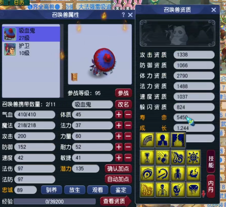 尽管由于畅玩服目前没有元宵活动,无法进一步提升这只吸血鬼的资质,但在风少的精心打造下,它已然成为【龙拳】服务器内最强的召唤兽。不少玩家纷纷表示,旭旭宝宝这周的比武称谓应该稳了!