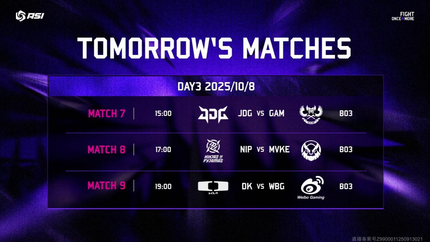 10月8日的比赛日程包含三场焦点对决:JDG对阵GAM、NIP迎战MVKE,以及DK与WBG的强强对话。其中JDG与GAM的较量格外引人注目,这场跨国对决最终演变成令人震惊的冷门。