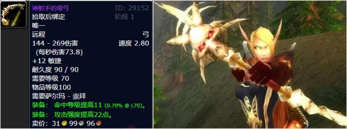 部落萨尔玛声望崇拜后,可以获得的神射手弯弓,堪称地球时代上古骨弓的升级版。敏捷、命中、攻强三位一体的属性,让它成为猎人初期的神器。而且萨尔玛声望几乎零难度,崇拜只是时间问题。那么问题来了,联盟方猎人TBC初期的声望远程武器是什么呢?