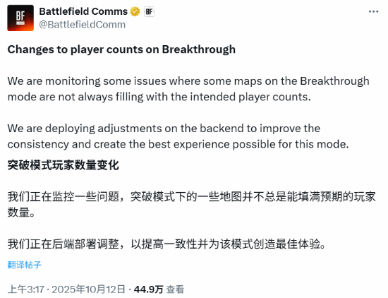 此次高效且及时的更新获得了玩家的一致好评,许多玩家认为这是相较于前作《战地2042》的一个更为积极的开端。他们纷纷表示,期待《战地6》能够在未来继续保持这种高效响应的态度,为玩家带来更加优质的游戏体验。