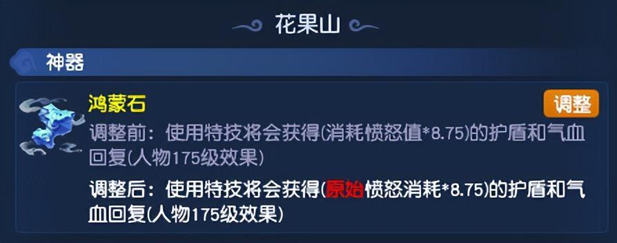 花果山三流派的集体改动主要集中在神器方面,将消耗愤怒转为原始愤怒。