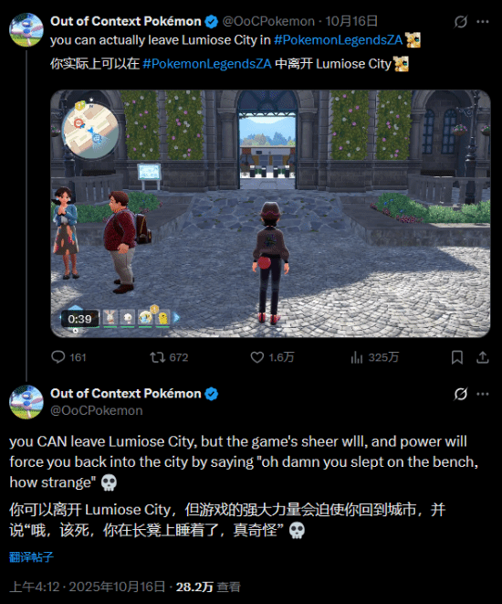《宝可梦传说:Z-A》已于10月16日正式发售,这款备受期待的游戏将舞台设定在了以人与宝可梦共存为目标的都市——密阿雷市。这座城市正大力推进都市再开发,力求打造一个人与宝可梦和谐共处的理想环境。然而,据知名游戏媒体The Gamer报道,为了巧妙解决游戏地图的边界问题,游戏开发商Game Freak在游戏设计中融入了一个颇具幽默感的机制,让玩家在尝试离开密阿雷市时,产生一种‘误以为真能离开’的错觉。