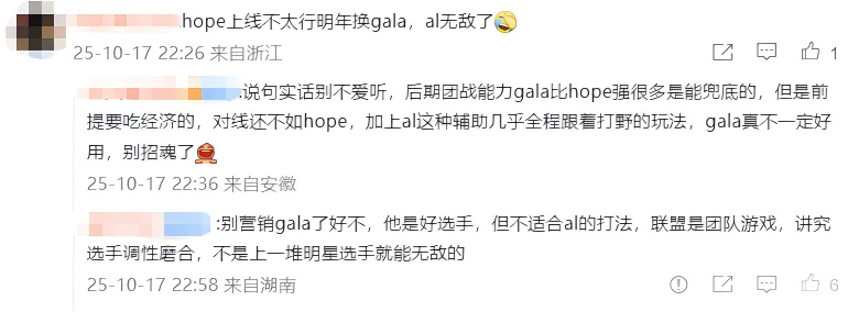 不过,大家都是为了LPL能出好成绩而出谋划策,网络对线大可不必。某些极端粉丝动不动就要求AL经理明年换掉Hope,换上其他选手,认为这样AL就能无敌,这种言论确实容易让人血压升高。毕竟,组建战队并非简单的加减乘除,选手之间需要磨合,Hope虽然个人能力不突出,但他能在团队需要的关键时刻发力,打出应有的输出,这已经相当难得。
