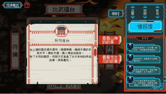 《龙女花》是一款精心打造的2D像素风文字悬疑冒险游戏。玩家将扮演一名被困在祭山神会当日的角色,陷入无尽的死亡轮回之中。为了打破这无休止的循环,你必须在有限的时间内,深入探索村子的每一个角落,寻找隐藏的线索,结识村中的奇人异士,了解他们的轶事与秘密,逐步揭开关于“龙女花”的神秘真相。