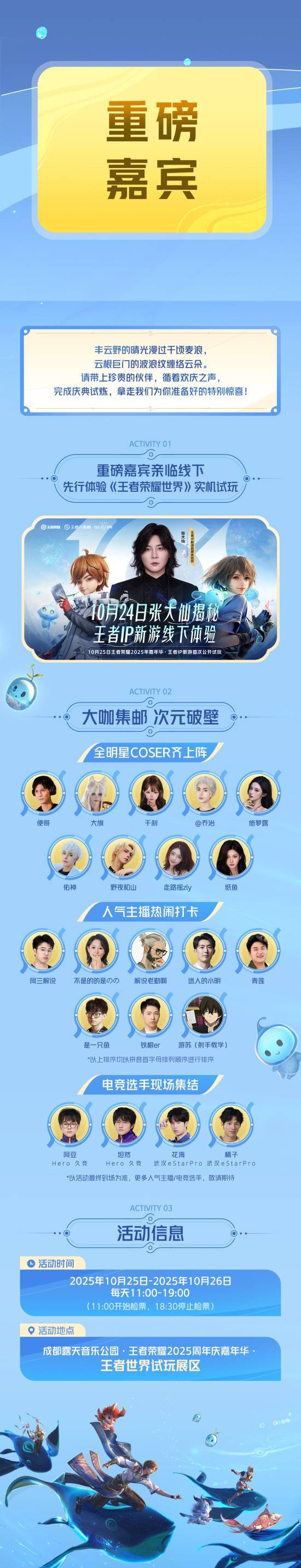 更令人兴奋的是,本次活动还邀请了众多知名嘉宾。其中,游戏主播界的佼佼者“张大仙”将亲临现场,与玩家们互动交流,分享游戏心得。此外,人气COSER走路摇、施梦露也将惊艳亮相,为试玩会增添一抹亮丽的色彩。