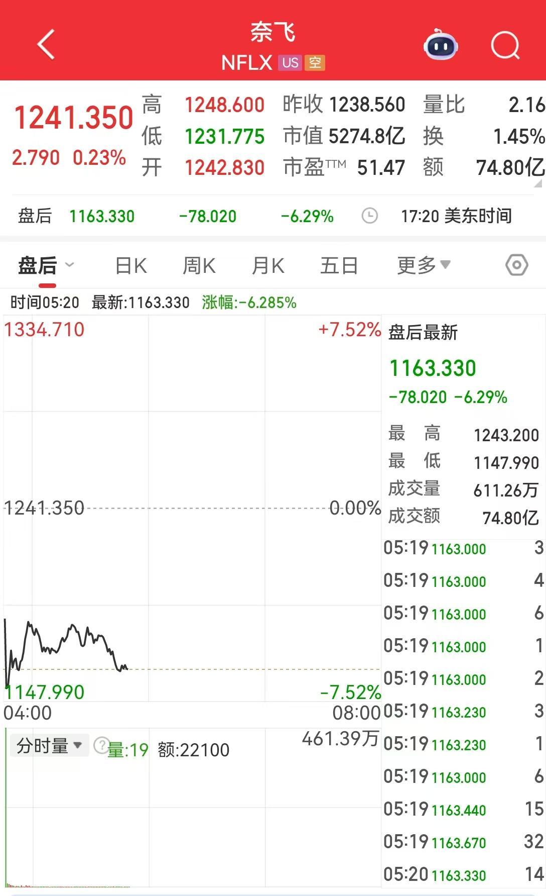 奈飞方面,其第三季度营收达115.1亿美元,同比增长17.2%;预计第四季度营收为119.6亿美元。第三季度净利润为25.47亿美元,去年同期为23.64亿美元;每股收益5.87美元。公司预计全年营收451亿美元,原本预计范围在448亿~452亿美元之间。然而,业绩公布后,奈飞美股盘后却跌超6%,市场反应出乎意料。
