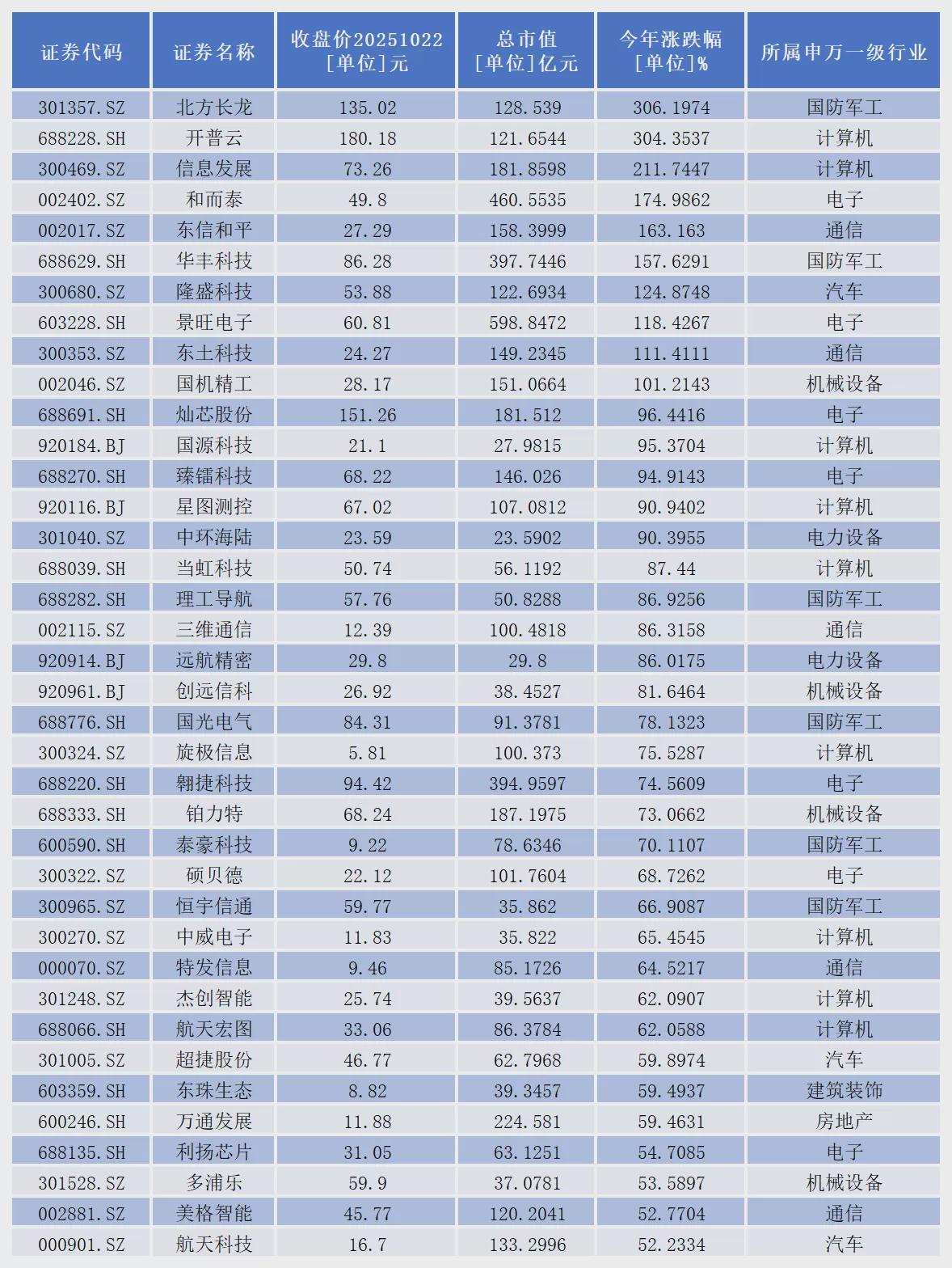 同花顺数据显示,截至10月22日收盘,A股卫星导航概念板块共有217家上市公司。今年以来,171家公司股价上涨,其中38家涨幅超过50%。北方长龙、开普云、信息发展、和而泰、东信和平、华丰科技、隆盛科技、景旺电子、东土科技、国机精工10家公司股价实现翻倍。