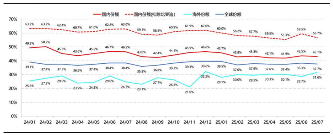 外资持续看好宁德时代的核心逻辑,在于其市场份额的扩张潜力和碾压式的盈利能力。目前,宁德时代全球市占率稳定在38%左右,但结构上呈现国内下降、欧洲显著提升的趋势。