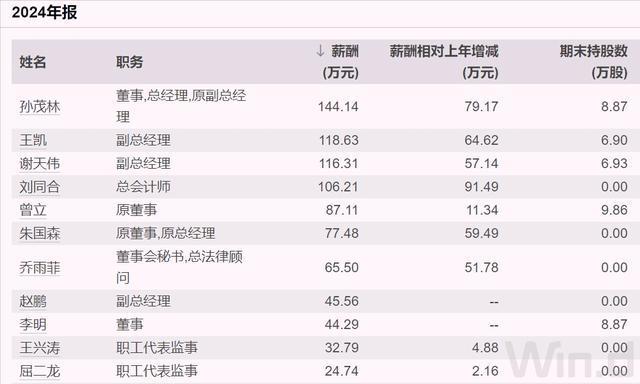 至于公司高层,2024年薪酬最高的是总经理孙茂林,超过144万元,多名高层薪酬超过百万元。去年曾担任总经理的朱国森也领取了77.5万元的薪酬。