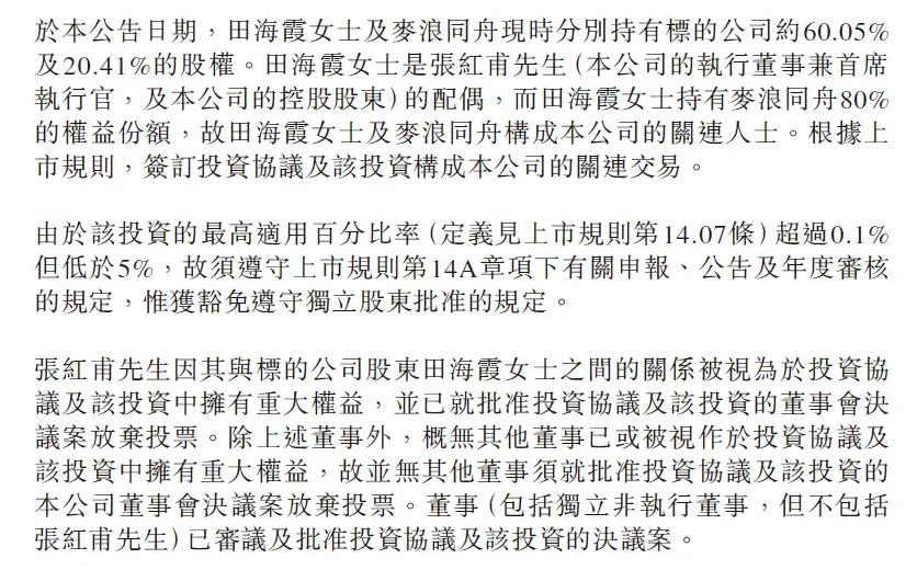 蜜雪冰城在公告中承认交易构成关联交易,张红甫已放弃投票。公司董事(不含张红甫)认为,交易遵循商业条款,符合股东整体利益。蜜雪冰城对媒体回应称,投资基于产业发展战略,且与福鹿家为独立品牌,无计划在蜜雪门店售卖啤酒。