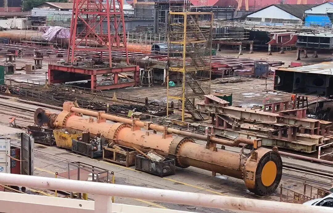 2025年1月,‘金广’紧急进入船厂,一场围绕核心液压系统的技改攻坚战全面拉开序幕。面对没有图纸、没有参数的重机升降油缸,技术团队驻守在船舶上,逐点测绘关键尺寸,从材质分析到工艺优化,进行了全流程、全周期的穿透式攻关。最终,仅用85天就完成了重机升降油缸的设计和生产,不仅彻底解决了内漏问题,还比原配件减重25吨,成本仅为二手进口件的三分之一。
