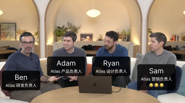 于是,一个有趣的场景出现了:当Atlas浏览器负责人兴高采烈地介绍产品时,萨姆·奥特曼的眉头却皱成了一个「囧」字。