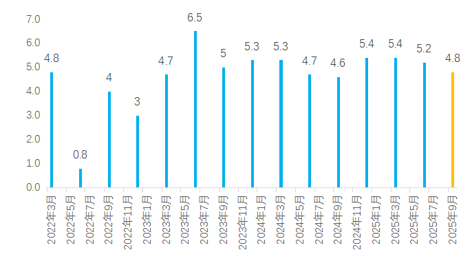 最后,出口表现显著超出预期。以美元计算,前三季度我国出口增速为6.1%,三季度出口增速为7.84%,显示当前我国出口受美国加征关税的实际影响较为有限,并呈现出以下特征和趋势:一是出口规模保持相对较高水平。显示尽管当前外贸环境有所恶化,但对中国出口整体影响可控。二是中国对美出口减少的趋势未变。从对美出口占中国整个出口的比重来看,已从特朗普第一任内的20.7%左右降至10.44%。三是出口增长主要体现在对非美市场出口扩大。从出口市场比较来看,三季度中国对东盟、欧盟、拉美、非洲等地区出口保持增长。截至目前,中国已成为全球166个国家和地区的前三大贸易伙伴,是68个共建“一带一路”国家的最大贸易伙伴。四是集成电路、汽车、船舶等机电产品和高新技术产品推动中国出口走高。9月机电产品出口较去年同期增长12.6%,在全部中国商品出口金额中的比重已高达63.2%。