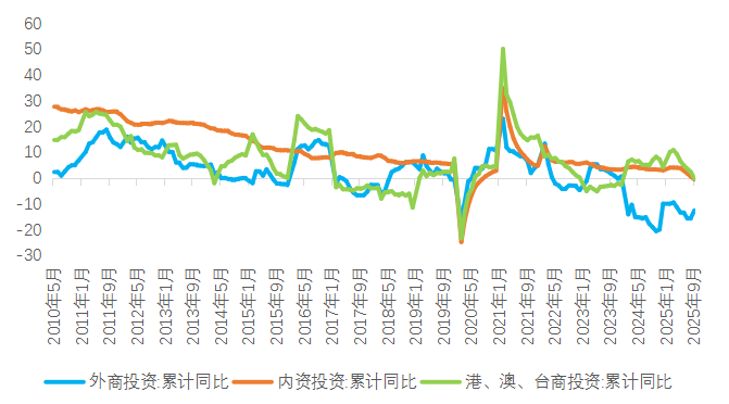 此外,固定资产投资领域还有不少其他结构性和深层次矛盾可能阻碍增长。例如,分登记注册类型看,外商投资降幅最大。内资企业固定资产投资同比下降0.6%,港澳台企业固定资产投资下降0.3%,外商企业固定资产投资下降12.6%。分地区看,东部地区投资增长相对乏力。东部地区投资同比下降4.5%,中部地区投资增长1.5%,西部地区投资增长1.5%,东北地区投资下降8.4%。从企业性质比较看,民间投资有下行明显。1-9月,国有投资增长1.0%,民间投资-3.1%。