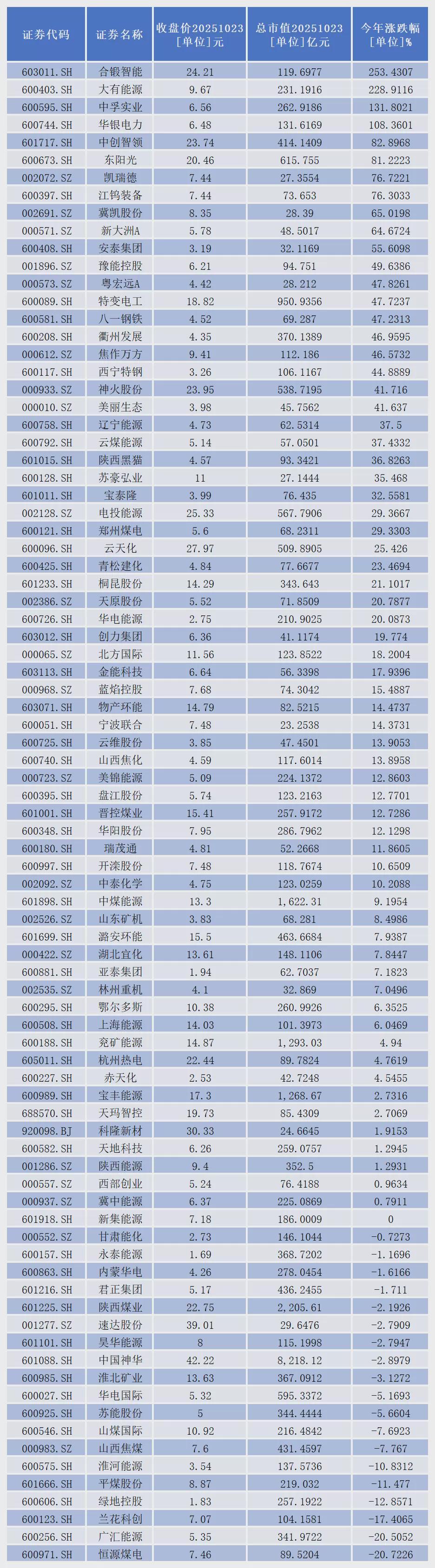 同花顺数据显示,截至10月23日收盘,A股煤炭板块一共有85家上市公司。