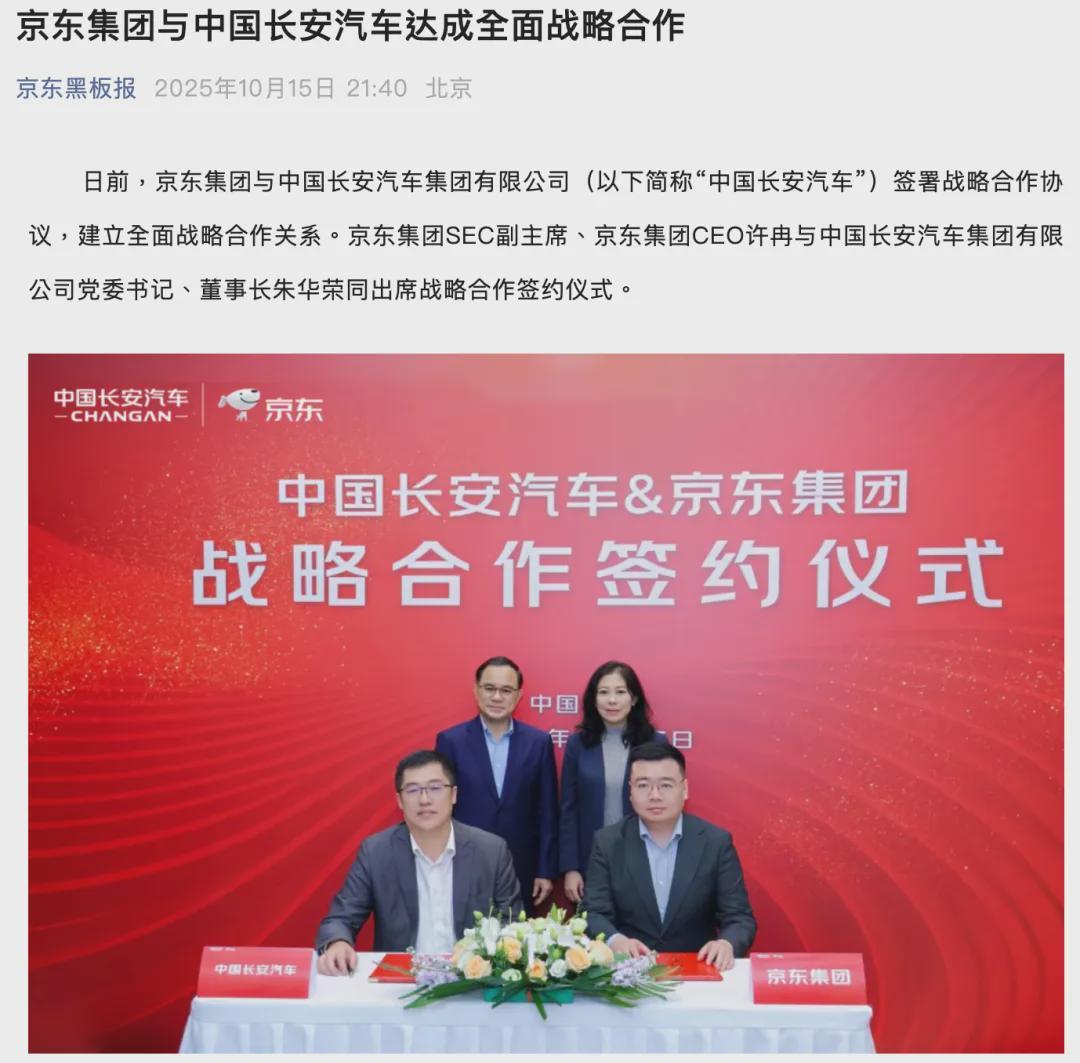 次日,京东汽车又与央企长安汽车签署了战略合作协议,进一步巩固了其在汽车行业的地位。