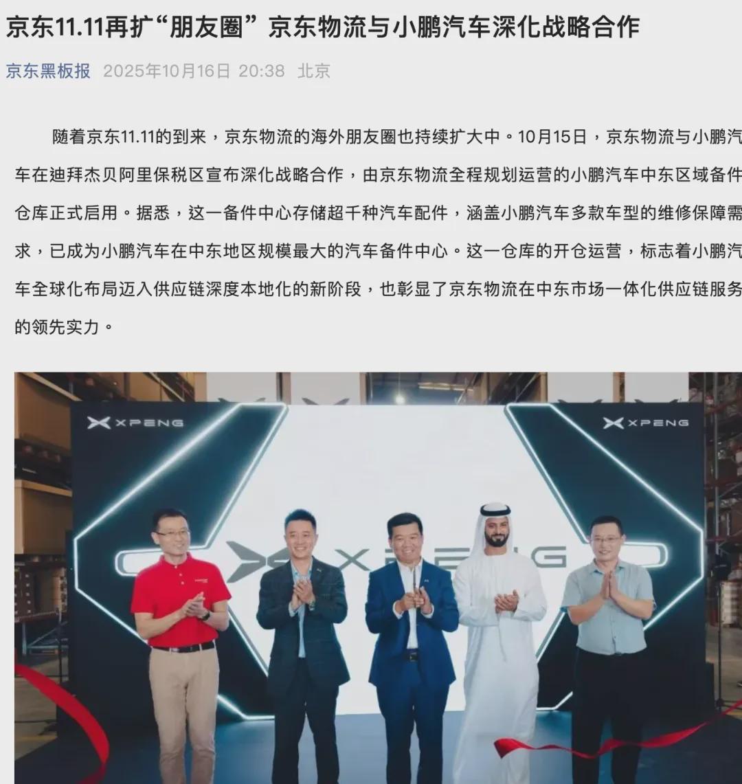 在这背后,是刘强东十年如一日的执念,即要把物流做成京东的护城河。如今,这条护城河正在跨出中国,延伸到中东、北非,成为小鹏汽车海外售后服务的支点。京东物流的介入,为这种“出海热”提供了真正的底座。