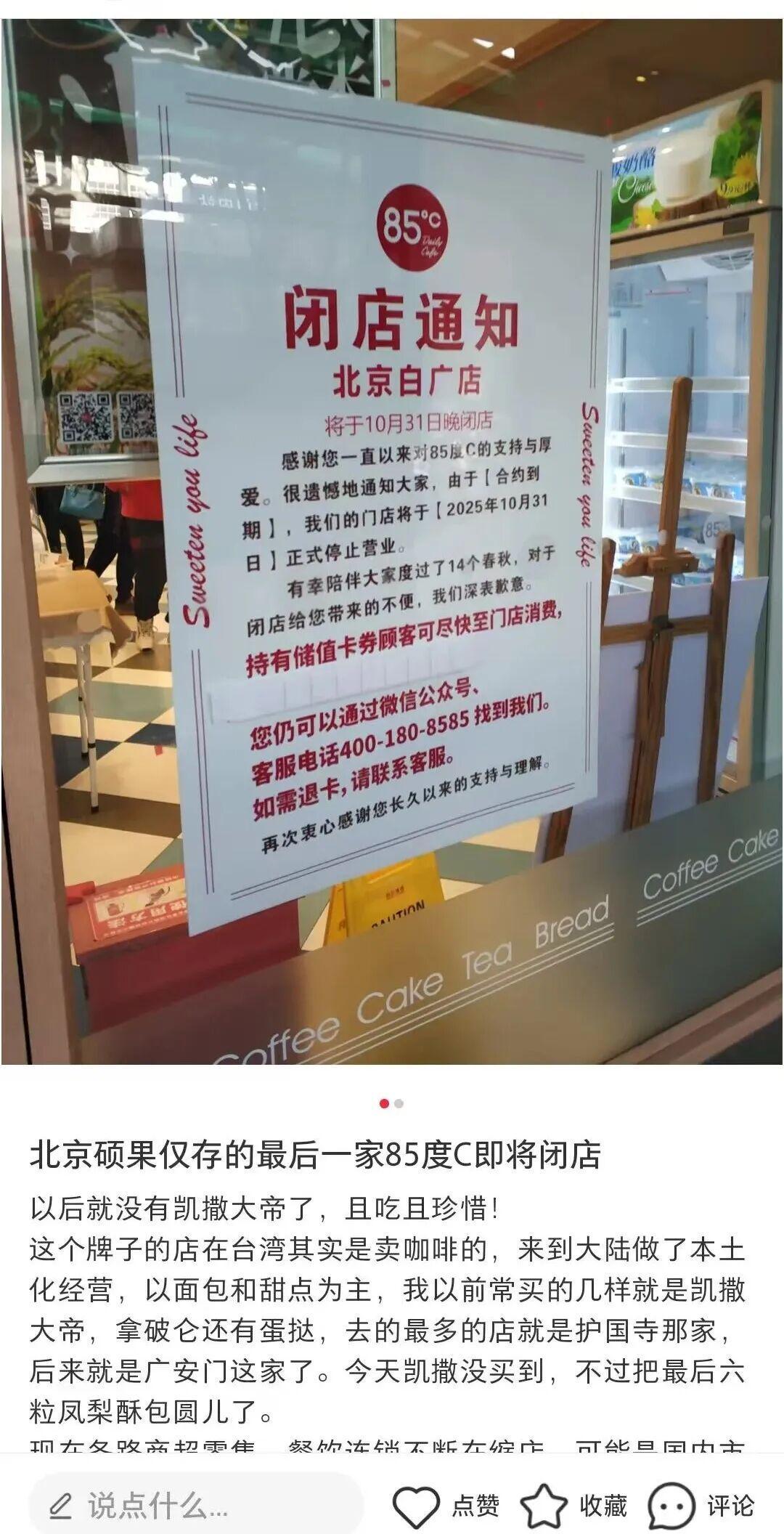 据多位网友发帖透露,85度C北京知春二店日前张贴出了闭店通知,宣布将于10月19日晚正式闭店。这一消息让不少忠实顾客感到惋惜。