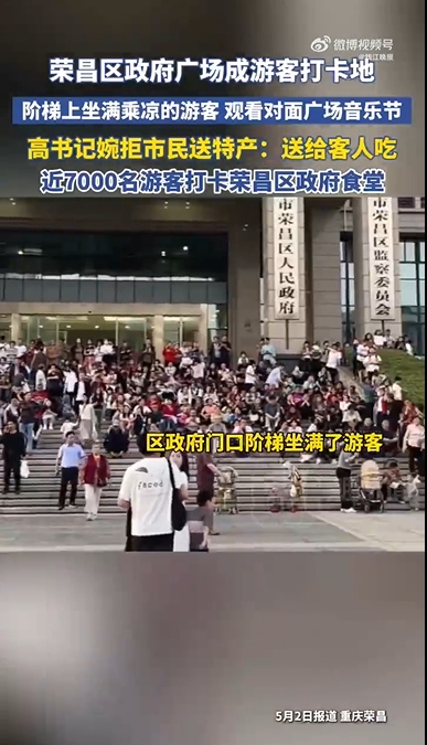 数据显示,今年五一荣昌接待游客200余万人次,同比增长157%;卤鹅销量29万只,增长752%;政府食堂消耗肉类2万余斤。国庆期间,顺德、徐州等地纷纷借鉴"荣昌模式",开放机关资源服务民众。