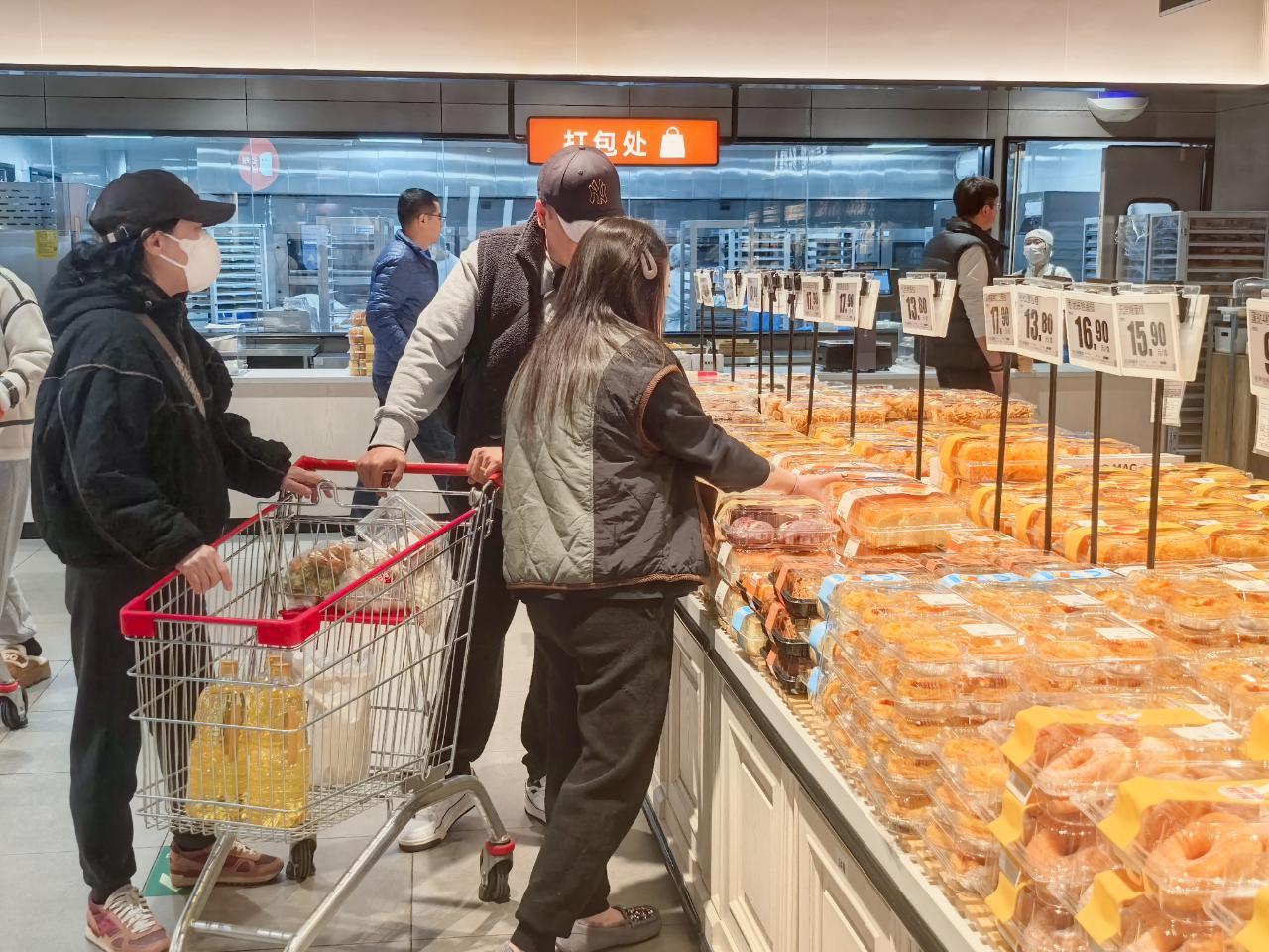 消费者在物美超市学清路店购物。(中国商报记者 冉隆楠/摄)