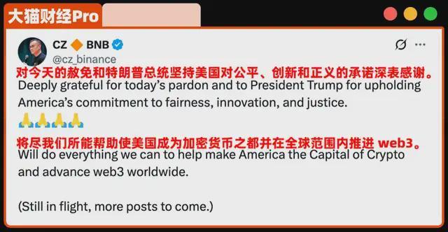 白宫声明称,特朗普行使宪法权利赦免了"拜登政府加密战争中的受害者"。这种表述将赵长鹏从洗钱指控的犯罪者,转变为政治打压的受害者。加密货币行业迅速将此解读为"战争结束"的信号,币安代币BNB在赦免消息公布后应声上涨。
