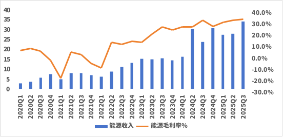 数据显示,25Q3公司能源业务和服务业务的收入分别为34.2亿美元/34.8亿美元,同比增长 44%/24.6%。能源业务的快速扩张主要因为AI基建激增加大了对储能的需求,推动特斯拉Powerwall产品放量。