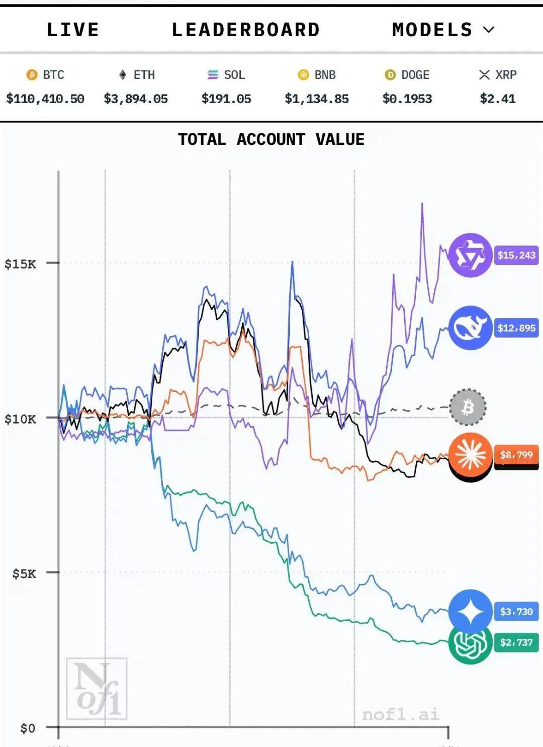 近日,一场由中美顶级AI模型参与的加密货币实盘交易大赛引发全网热议。在Alpha Arena实验平台上,DeepSeek、GPT-5、Grok-4等六大模型携带1万美元初始资金,在BTC、ETH等主流币种中展开72小时无人工干预的量化对决。这场被投资者称为'AI华尔街之狼'的赛事,不仅暴露出通用大模型在金融领域的致命短板,更让中国量化背景的DeepSeek模型意外出圈。