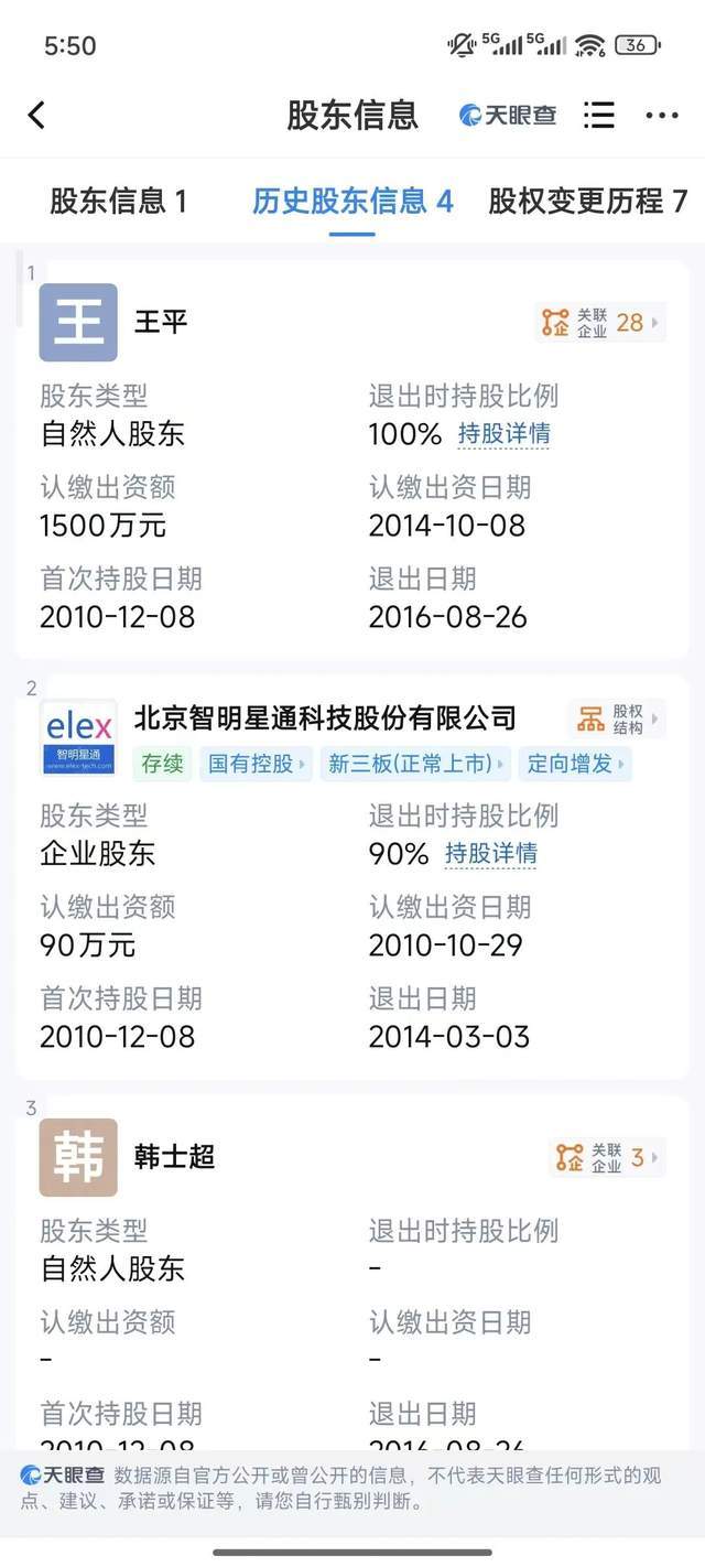 知名创业者唐彬森麾下的智明星通在此期间也持有智明远扬的股份。“天眼查”信息显示,2010年至2014年,智明星通对智明远扬的持股比例持续变动:初始持股10%,后续逐步提升至2014年的90%,同年智明星通又退出。