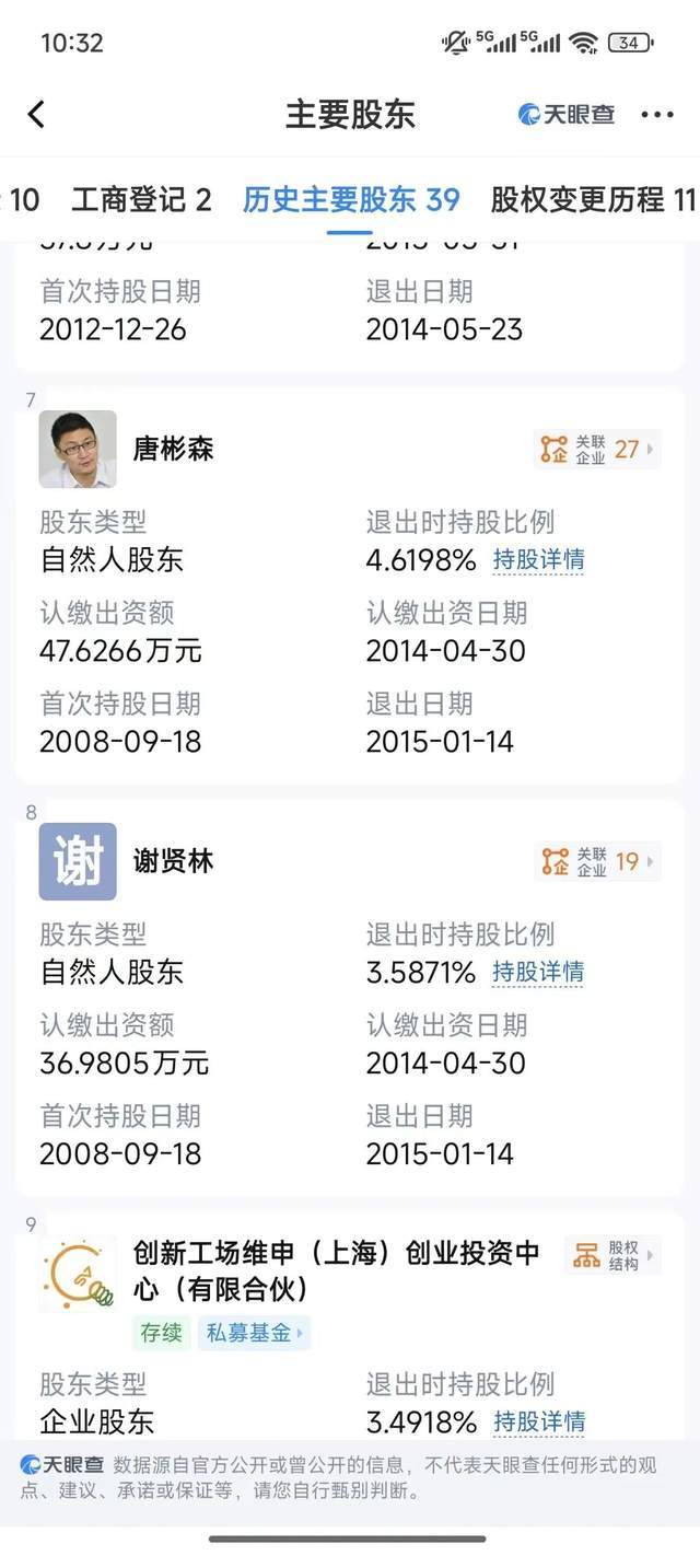 根据“天眼查”显示,智明星通的历史持股人唐彬森在2008年首次持股,2015年退出,唐彬森退出时持股比例为4.62%。而唐彬森后于2020年辞去智明星通CEO及副董事长职务,此后逐步退出公司董事会,完成了从游戏行业向消费领域的跨界转型。