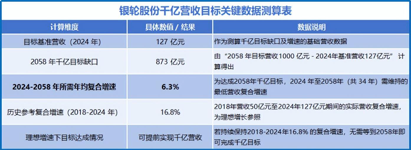 以2024年127亿元营收为基准,银轮股份距离2058年千亿目标仍有873亿元的缺口,这意味着2024-2058年的营收年均复合增速需要达到6.3%。