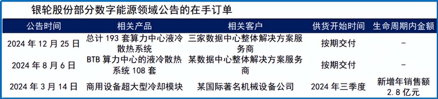 2024年8月,公司成功拿下108套BTB算力中心液冷散热系统订单;12月又新增193套订单,覆盖了三家头部数据中心整体解决方案服务商。