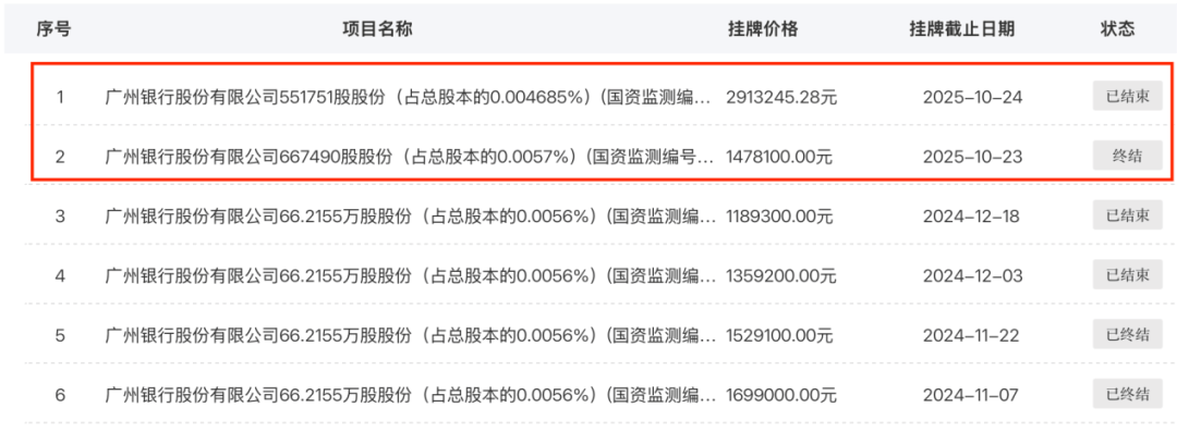 2024年末,深交所披露了广州银行曾有4笔股权转让挂牌,出让方均是广东省电信实业集团(持股66.22万股)。