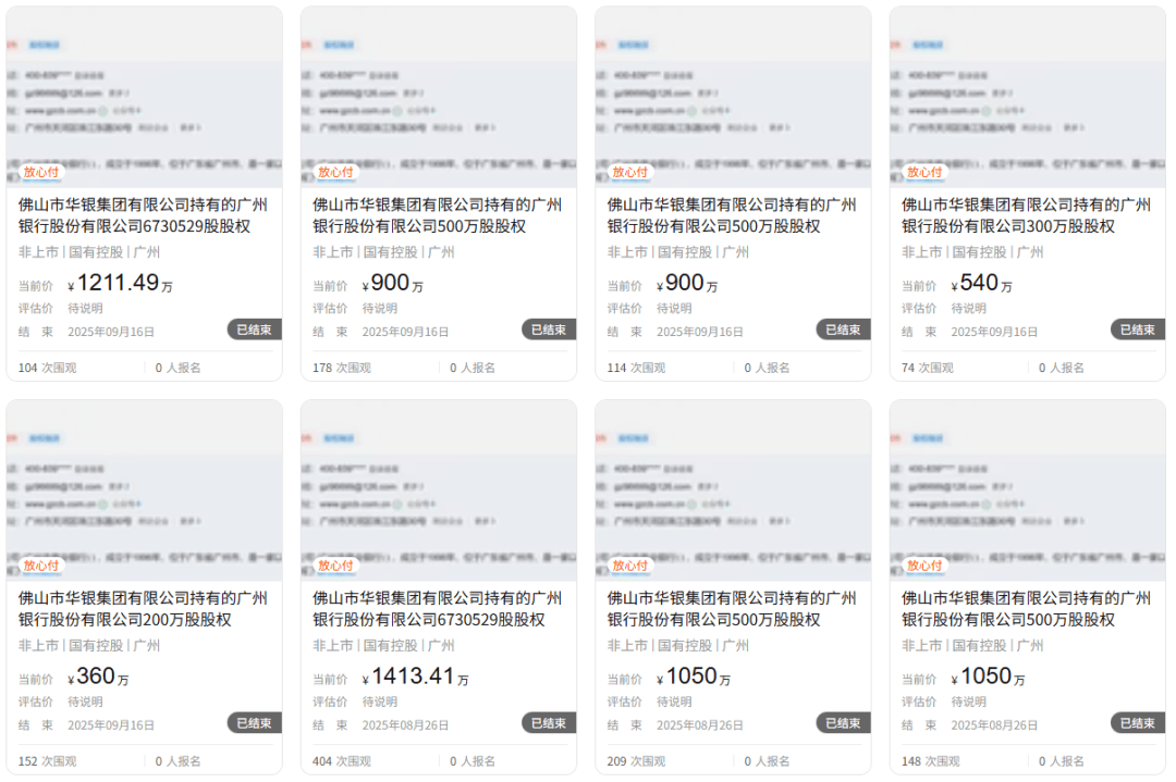 自2024年以来,广州银行多笔股权被拍卖或挂牌,有股东将所持股权拆分7笔甩卖,却屡次流拍。
