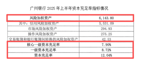 究其根源,核心在于资产规模扩张而引发连锁反应。2024年末,该行的风险加权资产为5541.64亿元(较上年底增加132.91亿元),而2025年上半年,这项指标增至6143.8亿元,半年大增602.16亿元。